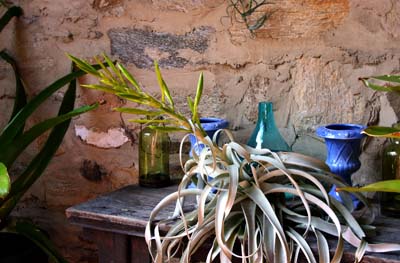 Tillandsia xerographica, known as the King of Airplants, is found in the wild of the semi-deserts of Guatemala.  The rotund rosette has long curling and twisting silver leaves.  In my home garden,  I often take a rosette of Tillandsia and use it as a table ornament in the garden.  It can simply be placed anywhere in the garden where it will occasionally get some moisture.