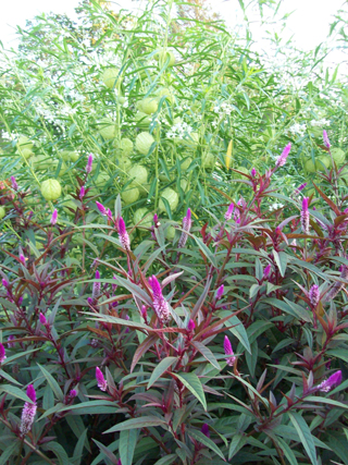 Asclepias physocarpa grown with Celosia at Longwood Gardens. photo credit: J. Coceano