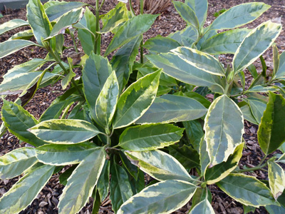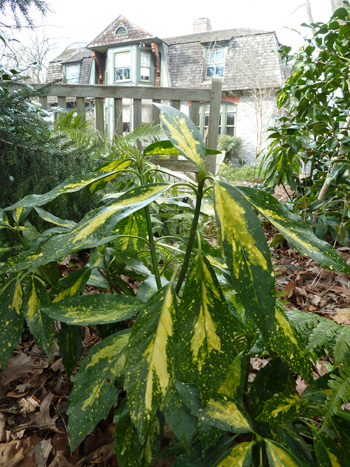 Aucuba japonica 'Limbata' adds a touch of light and brightness to the shade garden. photo credit: J. Coceano