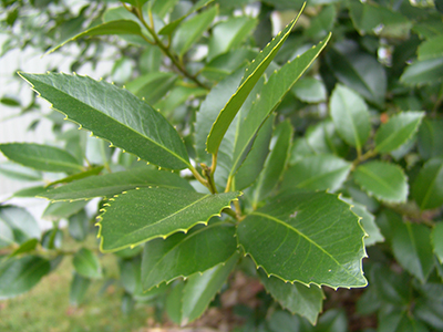 Ilex x koehneana ‘Ajax’ has attractive green leaves with little winter damage, and uniform pyramidal shape. photo credit: R. Robert