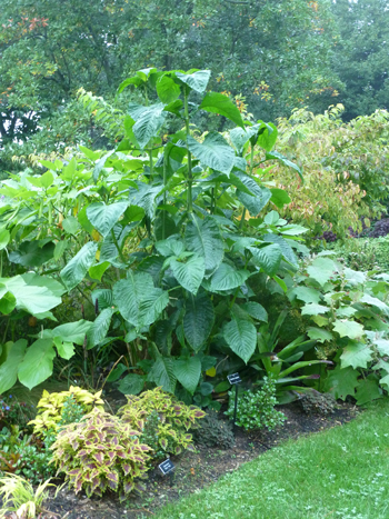 Brilliantaisia subulugurica, giant salvia, can grow as tall a sunflower, creating a towering display with lilac flowers. photo credit: J. Coceano