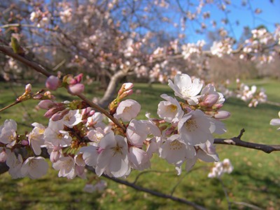 If you have planted early and late bloomers in your garden, you can enjoy a show no matter the volatility in temperature. While the Arboretum will not experience a show from Prunus ‘Okame’ this year, other varieties like Prunus x yedoensis are looking stunning right now in the Cherry Border. The season typically ends with the wonderful double-pink flower from Prunus ‘Royal Burgundy’. To explore all the flowering times of cherries, download the Cherry Collection brochure.