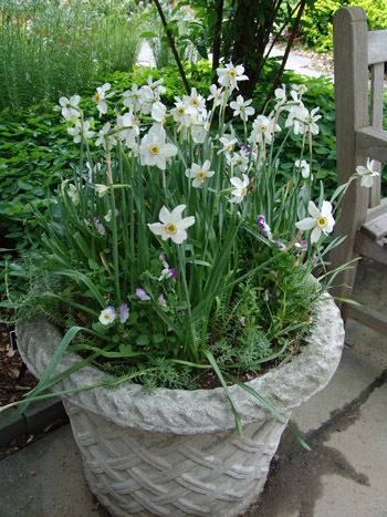 Bulbs can also be grown in containers. Both daffodils and tulips do very well. It is best to use a container at least 24 inches in diameter to insulate the bulbs from very cold weather. Make sure the container has holes for good drainage.