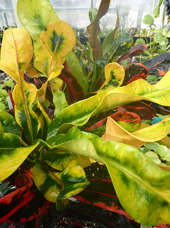 Many are familiar with croton (Codiaeum), the vibrant colored houseplant with leaves ablaze in shades of yellow, orange, red, green, and pink. photo credit: J. Coceano