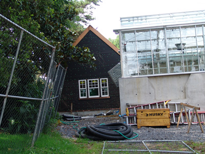Magnolia grandiflora 'Edith Bogue' encroaching on the Wister Greenhouse. photo credit: R. Robert