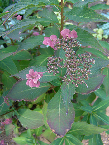 While Hydrangea serrata Tiny Tuff StuffTM blooms on old wood it has been selected for its bud hardiness. photo credit: R. Robert