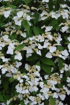 None were in full bloom, that is, until I rounded the corner and discovered a specimen loaded with white lacecap flowers. At first I wondered, “What cultivar is this?” None of the lacecaps that I was familiar with would be blooming this early. But a glance at the tag showed me that it was, in fact, an entirely different species-the umbel hydrangea (H. umbellata). I took several pictures of it and noted that it was in full bloom on June 5, 2008.