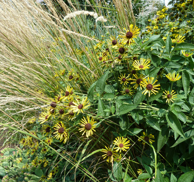 Rudbeckia subtomentosa 'Henry Eilers' and ornamental grasses make great pairings with L. formosanum. photo credit: J. Coceano