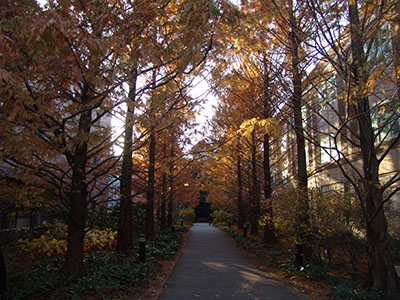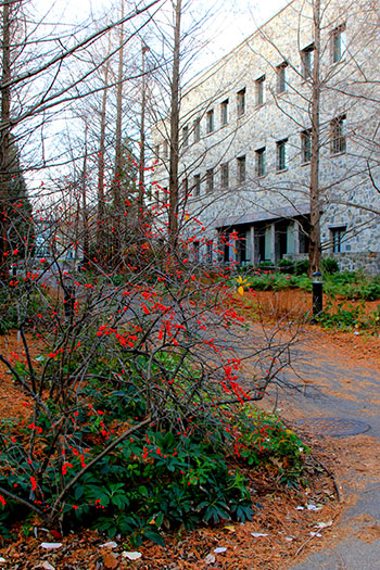 This planting of young Metasequoia glytostroboides 'Ogon' is located below the Wister Center. photo credit: C. Morrissey