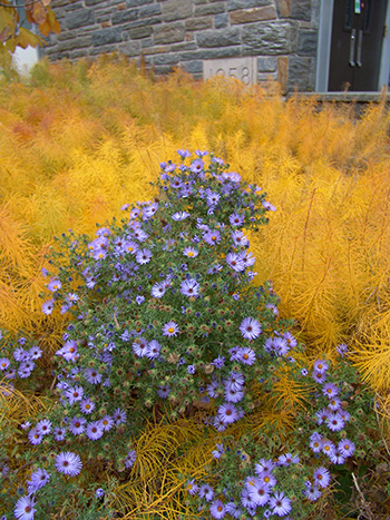 Another fall favorite making a statement with its golden fall companion, Amsonia hubrichtii ,is Symphyotrichum oblongifolius ‘October Skies’. photo credit: R. Robert