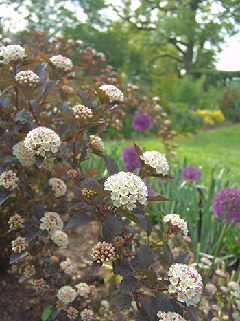 Physocarpus opulifolius Summer Wine TM blooms with white flowers in the spring. photo credit: R. Robert