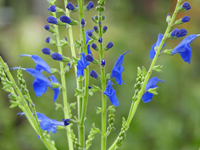 Salvia sagittata flowers, borne in abundance, are a brilliant blue, with a spreading lower lip. photo credit: M. Tipping