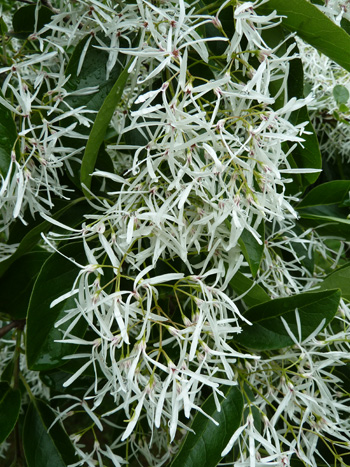 In the text, Growing and Propagating Showy Native Plants, Richard E. Bir ponders why fringe tree, Chionanthus virginicus, has “been slow to become appreciated.” John Bartram introduced it to England via Peter Collinson in 1736. The Royal Horticultural Society awarded it with an award of merit 195 years later! Both C. virginicus, and its Asian cousin, C. retusus, are spectacular large shrubs or small trees for the garden.