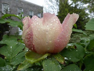 While the cool weather has helped prolong the tree peony blossoms, the rain hasn’t been kind. Precipitation fills the bowl-like blooms causing the individual petals to stick together and weighs down the flowers. One tree peony that hasn’t been troubled with the recent downpours is Paeonia ‘Nike’. Strong stems rising well above the foliage and rounded petals with colors of peach, pink, and coral characterize this tree peony. Photo credit: J. Coceano