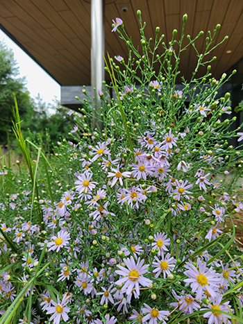 For those of us that love asters there always seems to be a favorite species that captivates, and for me it has to be the smooth asterSimilar to other members of the genus, Symphyotrichum laeve, has pale lilac colored ray florets surrounding soft yellow disk florets that just seem to radiate cheer.  Like its namesake the leaves of S. laeve are smooth and have a glaucous appearance which separates them from other asters, and is a favorite feature of mine.  Smooth aster also has a very sturdy habit, seeming to flop far less than other species.  Find these throughout the Singer Hall landscape. Photo credit: W.  Lapp
