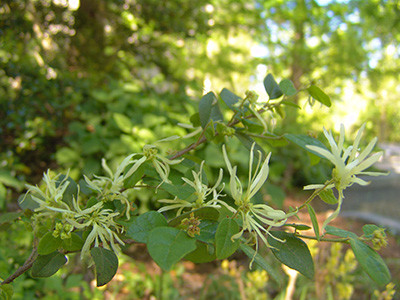The name Emerald Snow ® is a registered trademark for the cultivated variety L. chinense ‘Shang-White’. Sometimes called the Chinese fringe flower, probably due to the flower’s superficial resemblance to those of Chionanthus virginica. A few small specimens of Loropetalum chinense can be found along the access drive between Parrish Hall and the Lang Performing Arts Center. photo credit: R. Robert