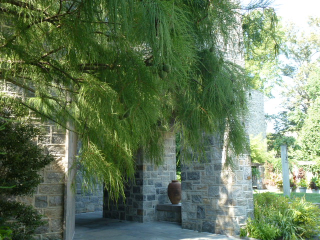 Next to Kohlberg Hall and the Isabelle Cosby Courtyard, you may notice a towering Taxodium ascendens seemingly trying to compete with the building itself in height. Also called pond cypress, it is native to the swamps and steams of the southeast United States.