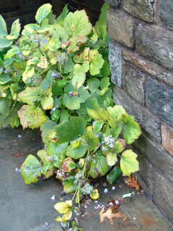 The start of fall color for Clematis heracleifolia var. davidiana in the Theresa Lang Garden of Fragrance. photo credit: R. Robert