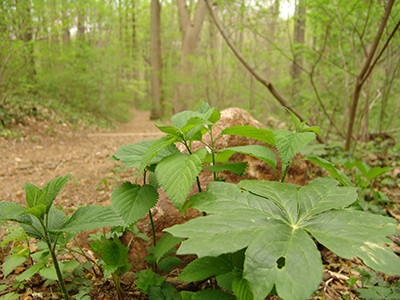 Early spring is a great time to explore this area as it displays mayapple, trout lily, bloodroot, and Jack-in-the-pulpit. photo credit: R. Robert