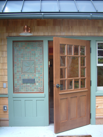 Construction and design of the 5,200-square foot structure – including a classroom, exhibit areas, greenhouse, and support space – focused on innovative energy efficient green building techniques. One technique is the reuse of Metasequoia glyptostroboides (dawn redwood) trees that were cut down during the construction of Alice Paul Hall. The harvested trees were made into shingles that were used for almost a third of the Center’s siding. Another technique involved the use of concrete containing fly ash, a byproduct of coal-fired power plants that is usually dumped in landfills.