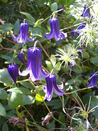 Bell-shaped blooms of Clematis 'Rooguchi'. photo credit: J. Coceano